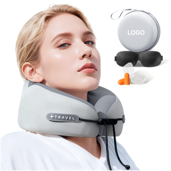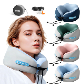 Logo ile taşınabilir u-şekilli bellek köpük yastık yıkanabilir serin boyun desteği uçak seyahat yastık-set taşınabilir depolama toptan
